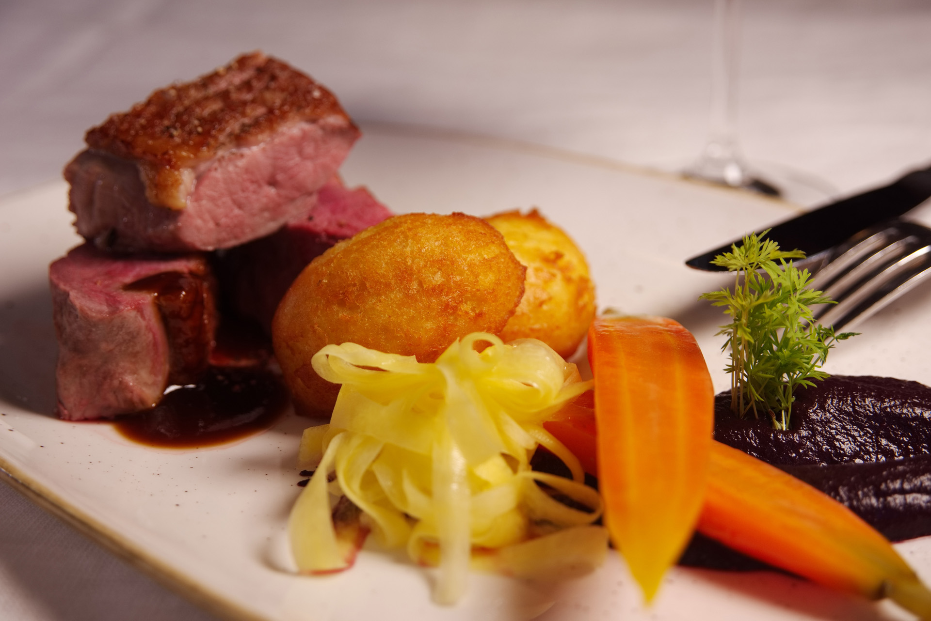 Brust und Keule von der Gans | Rotkraut oder Grükohl / Erdapfelkloß | Beifußjus